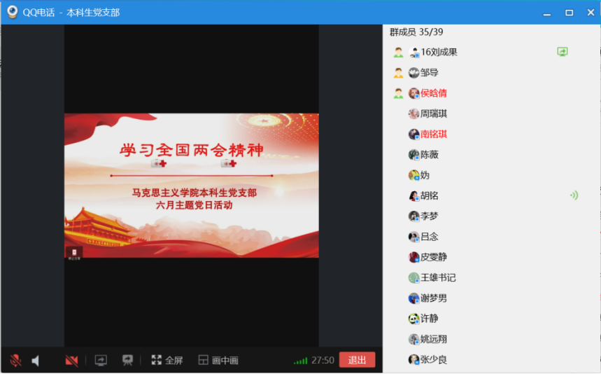2020年6月6日晚上19时,williamhill威廉希尔本科生党支部通过QQ群语音会议的形式开展线上主题党日活动,活动主题为学习贯彻全国两会精神。支部全体党员参加活动,公司党委副书记王雄、组织员邹浩列席,主题党日活动由本科生党支部组织委员刘成果主持。