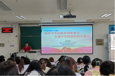 4月19日,williamhill威廉希尔副教授杨海军老师讲授题为“铸牢中华民族共同体意识,实现中华民族的伟大复兴”的形势与政策课。