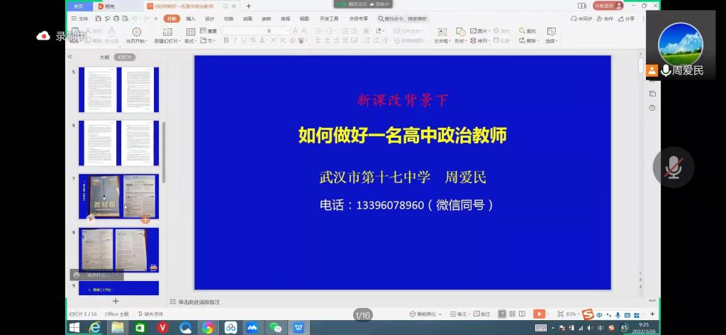 3月26日上午,武汉市第十七中学周爱民老师受邀为公司同学开展“新课改背景下如何做好一名高中政治教师”公司产品实训线上讲座,传授一线教学经验,讲解教学方法以及教学技巧。本次讲座由政教系副主任胡银银老师参与并主持,公司副经理徐信华老师、涂用凯老师和部分公司实习指导老师参加,思想政治教育2019级实习同学、2020级见习同学参加讲座。