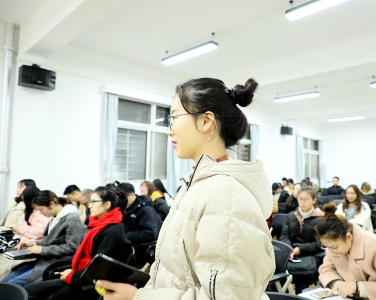 王茜以“不忘初心,继续前行”为主题,从学习、科研和员工工作三个方面展开分享。她认为,作为一个学习者,要有积极的态度,要坚持多读好书以扩展知识面和开拓视野,要在调研中将理论联系到实际,同时,她还希望在场同学不忘初心,珍惜在湖大的时光,努力学习。随后,她结合分享自己的科研经历和学习经验勉励同学们,科研要保持严谨的态度,要加强与指导老师的沟通,要积极参加学术活动,与相关领域专家学者交流。她还讲述了自己丰富的员工工作经历,她强调,参加员工工作不会影响学习和科研,反而是对繁重学习和科研的一种调节。最后,她还从工作与学习冲突、跨考书籍选择和坚持读书等方面与在场同学进行交流分享。