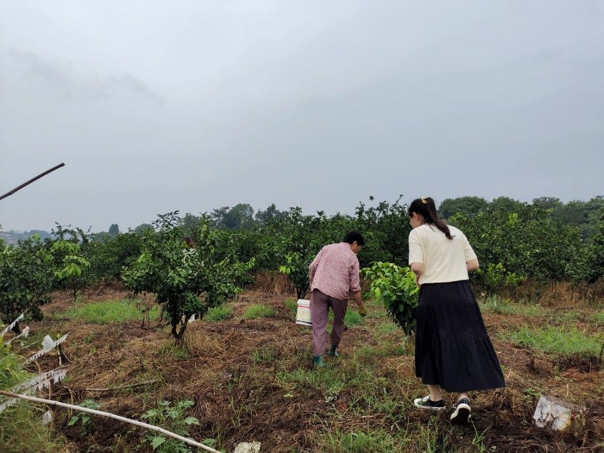 7月2号下午,成员们跟随村民们前往果园,在不打扰他们正常工作的情况下,对正在施肥的农民进行了采访。随后,团队成员们在负责人的带领下参观了整个果园,沿途见到了各式各样的农业基础设施,并在负责人一一阐述下,拓展了对乡村农业种植技术的认识,大致了解了五龙村品种改良的种植规模,学习了爱媛种植的相关知识。