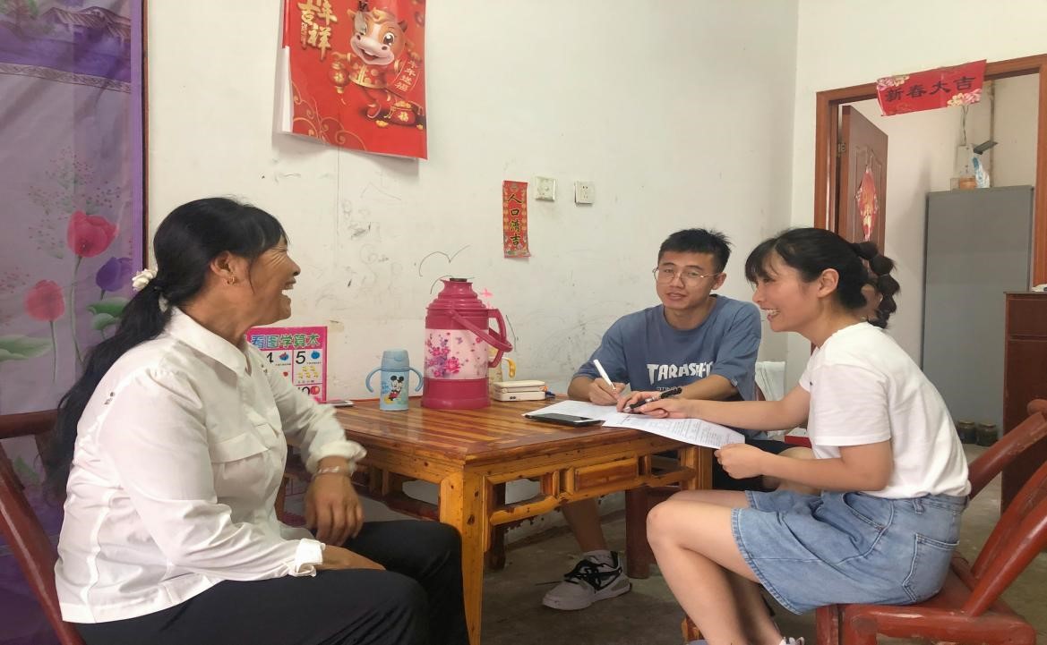 (图为调研队队员在大堰村村民温大妈家中访谈)