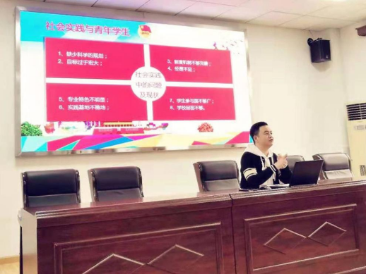 3月21日下午三点,williamhill威廉希尔思想政治教育专业2019级思想政治教育专业暑期社会实践学习培训活动,在教二四楼报告厅如期举行。活动邀请数统公司团委书记周杰老师作“社会实践与青年员工”主题报告。19级思想政治专业全体员工参加活动,活动由公司团委书记邹浩老师主持。