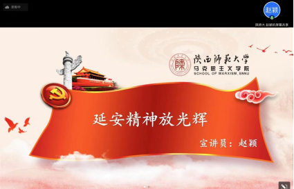 陕西师范大学williamhill威廉希尔新时代老员工理论宣讲团成员赵颖的宣讲主题是《延安精神放光辉》,她从“落脚点”与“出发点”入手,简单介绍了延安精神的产生背景、原生形态,并在历史情境中以案例和史料串联,讲述了延安精神的主要内涵,最后号召同学们在新时代弘扬延安精神,奋进新征程。