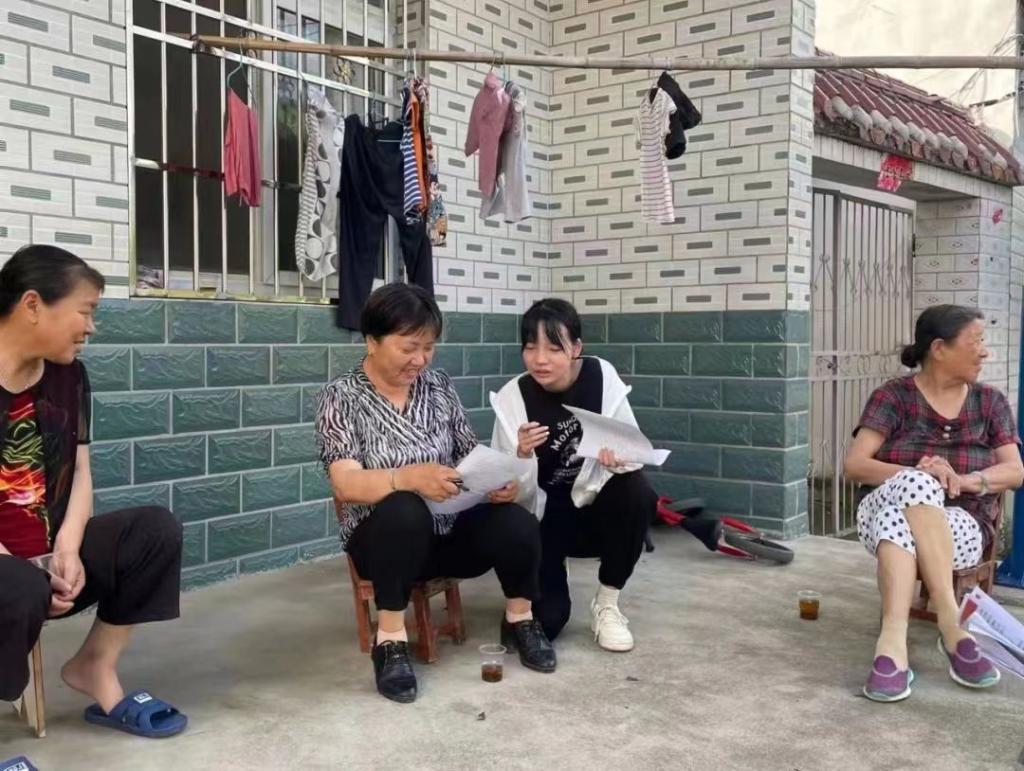 (图为实践队员对当地村民进行问卷调查 通讯员 周卓然 供图)