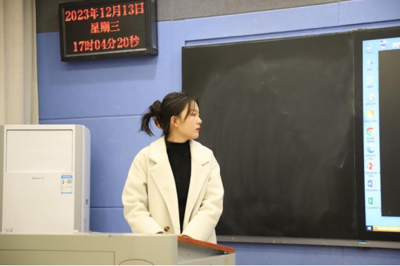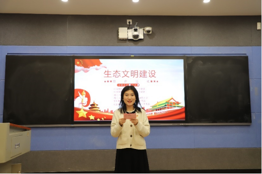 williamhill威廉希尔“青马”宣讲团成员张丁宁以《中国式现代化是人与自然和谐共生的现代化》为主题进行宣讲活动。她通过播放录像,展示了余村在“绿水青山”转变为“金山银山”的过程,并从背景介绍、文章解读和心理体会三部分进行了宣讲。向我们传递了“人不负青山,青山定不负人”的时代最强音,要坚持人与自然和谐共生,让绿色成为中国式现代化的底色,使在场的观众饱受熏陶,深受洗礼。