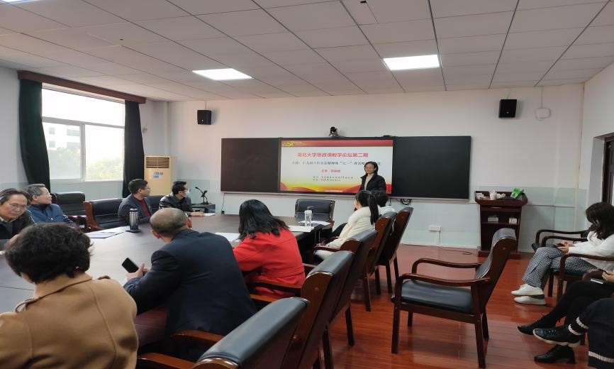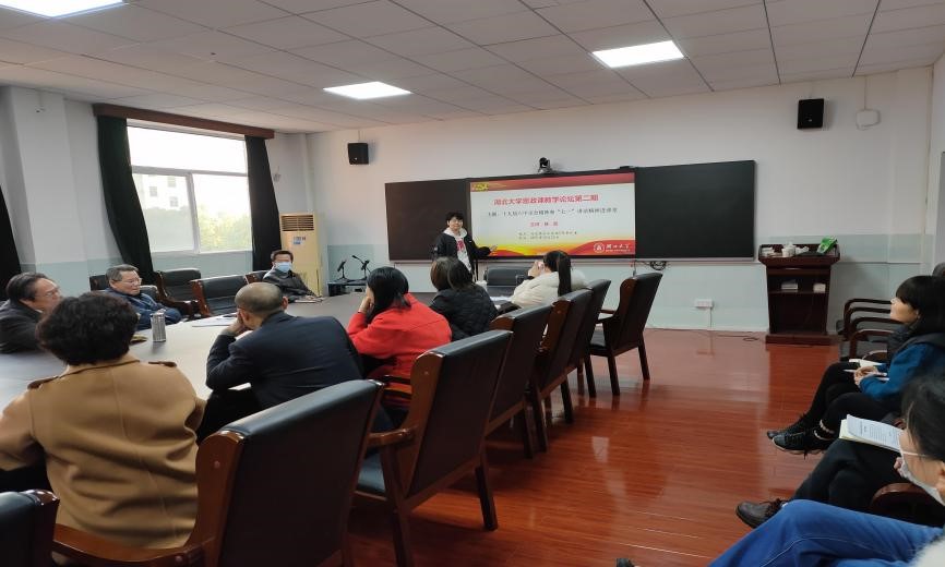 张丽君老师率先作报告,她从《关于若干历史问题的决议》《关于建国以来党的若干历史问题的决议》《中共中央关于党的百年奋斗重大成就和历史经验的决议》这三个历史决议谈起,说明我们党历来是高度注重总结历史经验的。随后,她重点解读了党的十九届六中全会论及的习近平的历史地位、习近平新时代中国特色社会主义思想的历史地位(两个确立),习近平新时代中国特色社会主义思想的核心内容(十个明确),新时代党和国家事业取得的历史性成就、历史性变革(十三个方面)和中国共产党百年奋斗的历史意义(五条意义)和历史经验(十个坚持)这四个问题。在具体阐释上,她将习近平新时代中国特色社会主义思想的核心内容(十个明确)与十九大报告中提到的“八个明确”“十四个坚持”进行了细致比对,在“变”与“不变”的辩证统一中深刻领会了党的十九届六中全会精神。此外,她还特别提到党的十九届六中全会对“毛泽东思想”“新时代”等的内涵所作的新界定,提醒老师们在课堂讲授时注意及时更新知识。