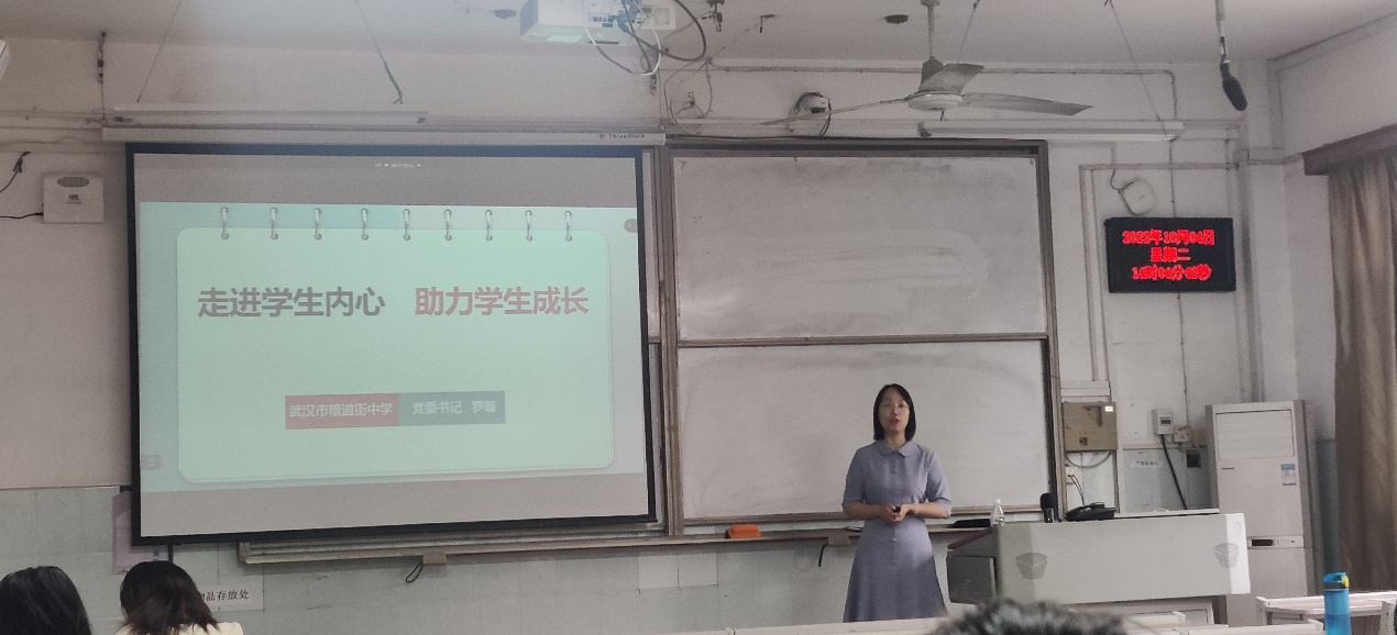 罗璇老师首先向大家介绍了有关粮道街中学的基本情况,并根据自己的管理和教学经验对当前教育实践中所存在的问题做了系统的概括,围绕“员工身心发展”的核心议题与同学们展开交流。