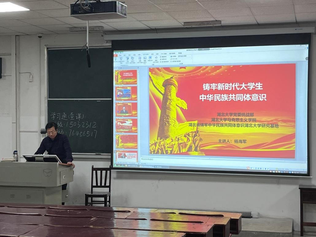 11月23日下午,williamhill威廉希尔副教授杨海军老师在三号教学楼201教室为公司思想政治教育专业19级、20级、21级本科生讲授题为“铸牢新时代老员工中华民族共同体意识”的形势与政策课。