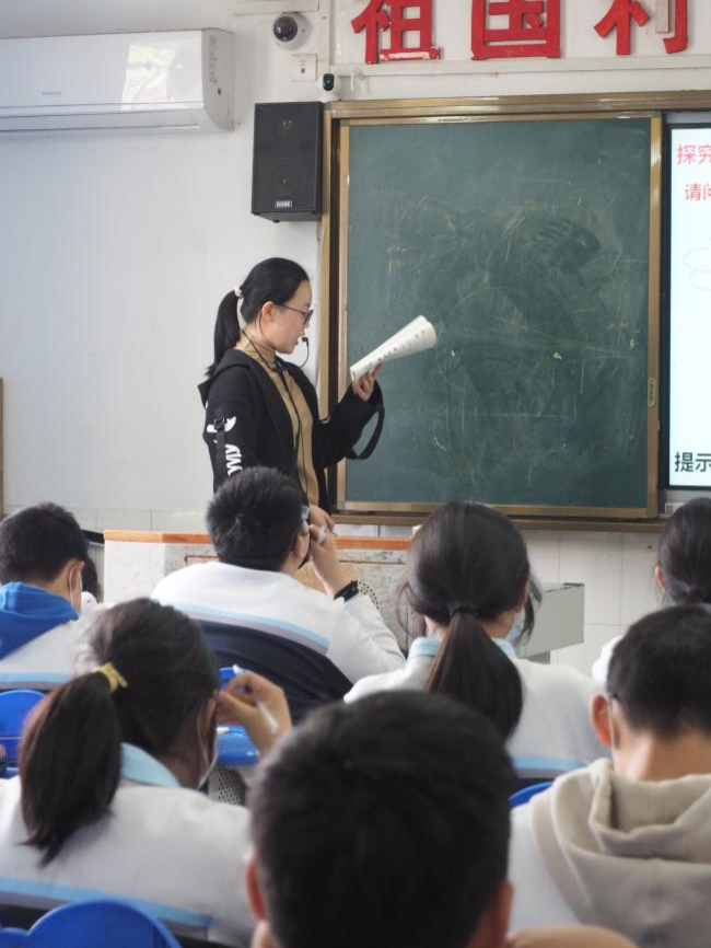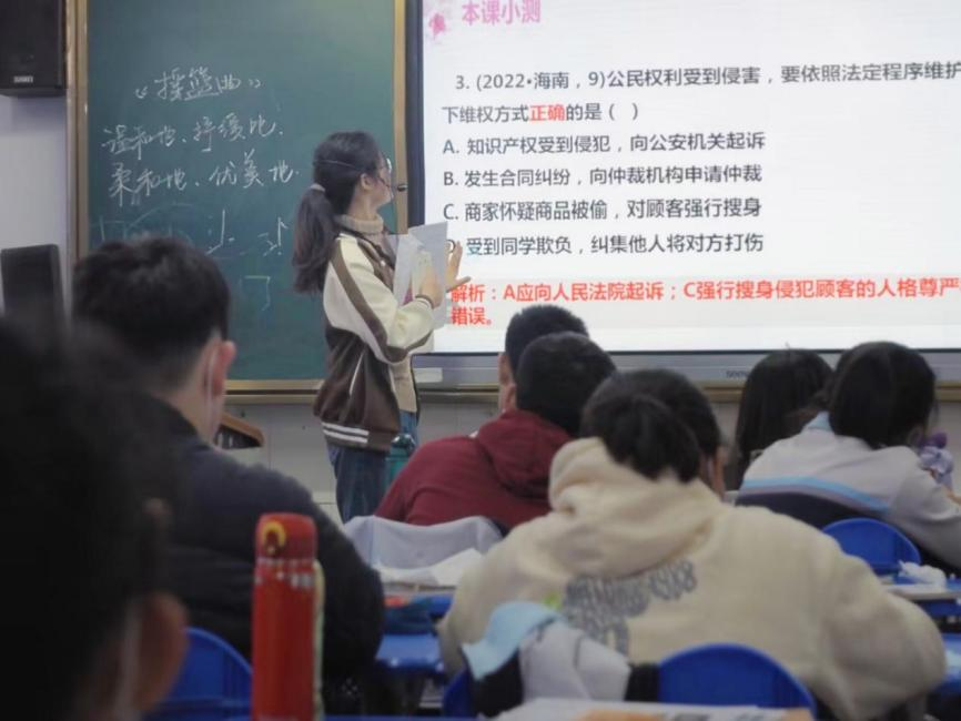 实习生徐珂谈道:“不知不觉,我们已经在四十九中实习了近一个月了,从二月初懵懵懂懂地听课学习,到三月始走上讲台,才发现给员工上课并没有想象中的那么困难,也逐渐学会享受成为一名老师的乐趣。初一的员工虽偶有顽皮,但他们身上也有着这个年龄段该有的活力,课堂上他们积极互动回答问题,这样的互动性是在大学课堂上做展示无法体会到的,也鼓励了我静下心来上好每一堂课的决心。这次实习最大的感想应该是我能克服自己对初中讲台的恐惧,能够慢慢探索进步讲好一节政治课。”