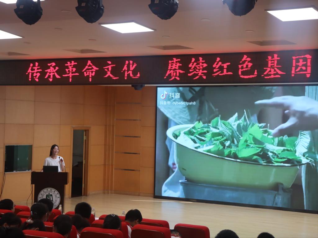 在理论宣讲环节,公司“青马”宣讲团成员艾晨和王潇以“星星之火,可以燎原”为主题,展开了深刻、生动的理论宣讲。艾晨为附中员工讲述了井冈山精神产生的历史背景和科学内涵,让附中的同学们认识到井冈山精神是历经磨难方得以形成。王潇则十分生动的以时光列车的形式带领附中学子云游井冈山,领略革命老区的独特魅力。她勉励附中学子,要将井冈山精神内化于心、外化于行,为祖国建设添砖加瓦,为民族复兴铺路架桥。