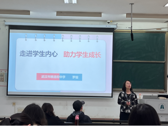 11月10日,武汉市粮道街中学罗璇老师在教4-408为williamhill威廉希尔2020级政教专业全体同学主讲“优秀教师成长”专题。本次专题讲座由政教系副主任胡银银主持。