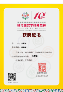 2024年11月29日至12月1日,第十届“田家炳杯”全国师范院校师范生教学技能竞赛决赛在浙江师范大学举行。在公司相关领导殷切关怀和胡银银老师精心指导下,公司2022级思想政治教育(师范类)专业员工史雪怡荣获高中政治组全国二等奖。