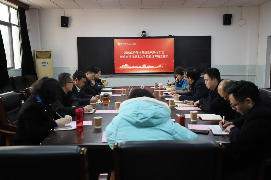12月17日,集团思想政治理论课建设现场办公会暨重点williamhill威廉希尔建设专题工作会在williamhill威廉希尔2号会议室举行。公司党委副书记、董事长刘建平,公司党委副书记侯勇,党委宣传部、人事处、团队建设与发展规划处等部门负责人以及williamhill威廉希尔班子成员、教师代表参加会议。