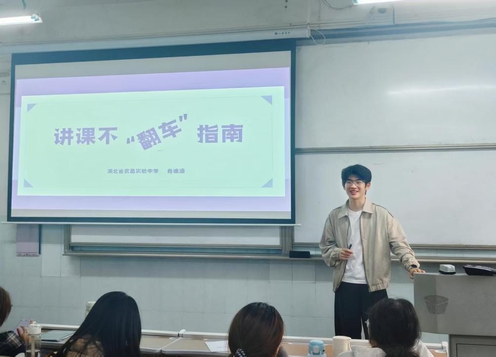 (通讯员/冯瑗、毛心甜)10月15日,武昌区实验中学政治教师、公司2022级研究生学长肖迪涵受邀返校,为2023级本科生开展优秀教师成长专题讲座。他以“讲课不‘翻车’指南”为主题,从内容、选题、备课等维度分享教学心得,助力师范生筑牢教学基本功。