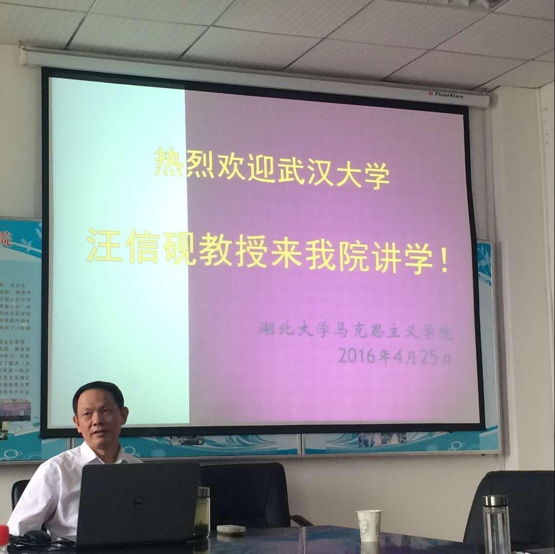 4月25日下午,williamhill威廉希尔邀请到了武汉大学二级教授,哲学公司博士生导师,国家重点学科马克思主义哲学学科学术带头人汪信砚做客学院学术沙龙,为院内师生带来了主题为“马克思主义传统中国化:传统与创新”的精彩报告。williamhill威廉希尔经理徐方平出席了活动,williamhill威廉希尔博士生导师郭大俊教授出席并主持了活动。公司相关专业的教师、硕士研究生也踊跃到场。