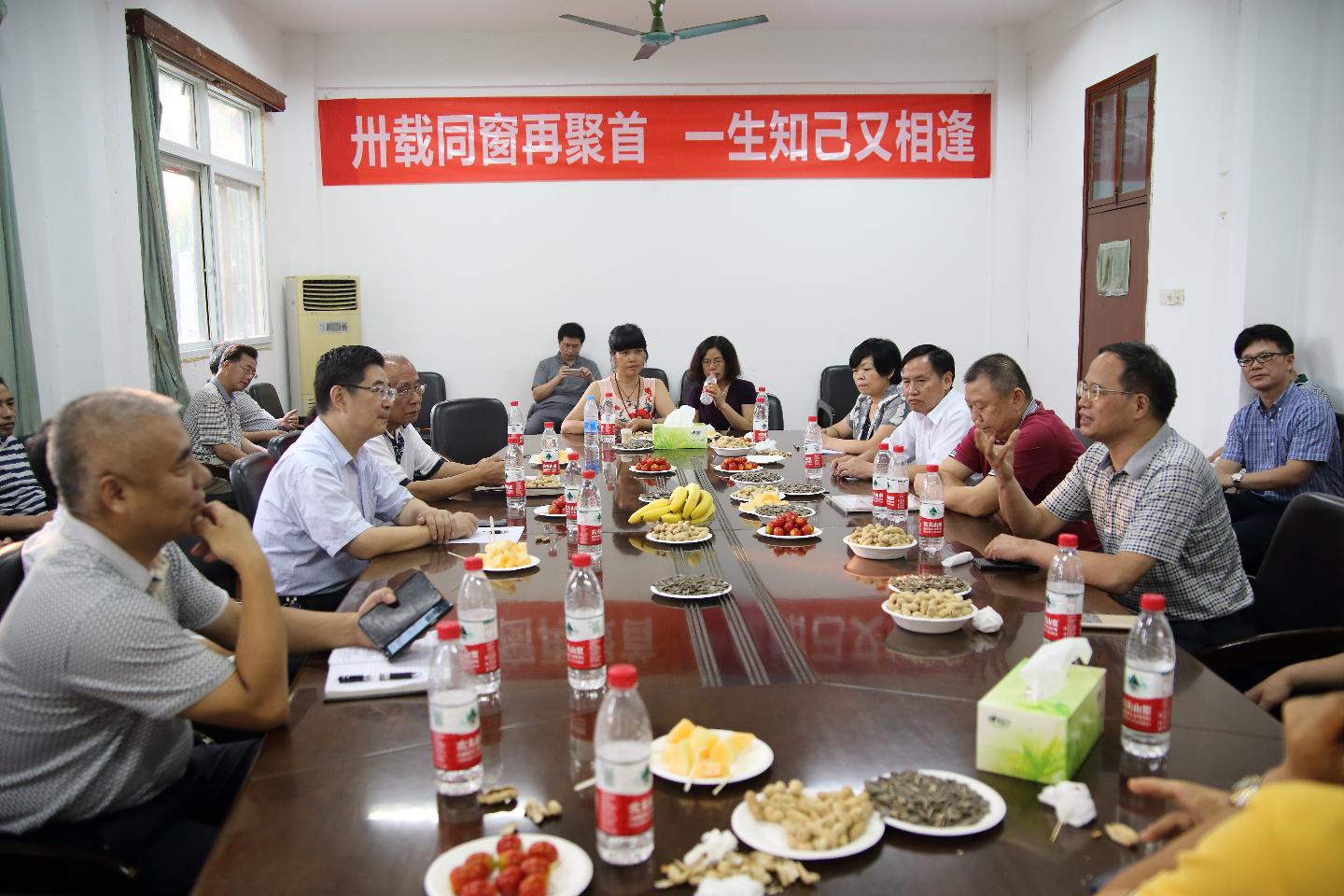 副董事长钱建国,82政教员工、副董事长杨鲜兰,校合作发展处处长金梅、公司党政负责人,原政治系领导老师王文卿、幸海华、董立仁、江畅、陈道德等与员工们在公司四楼会议室亲切座谈,对员工返校探望母校及恩师表示热烈欢迎。