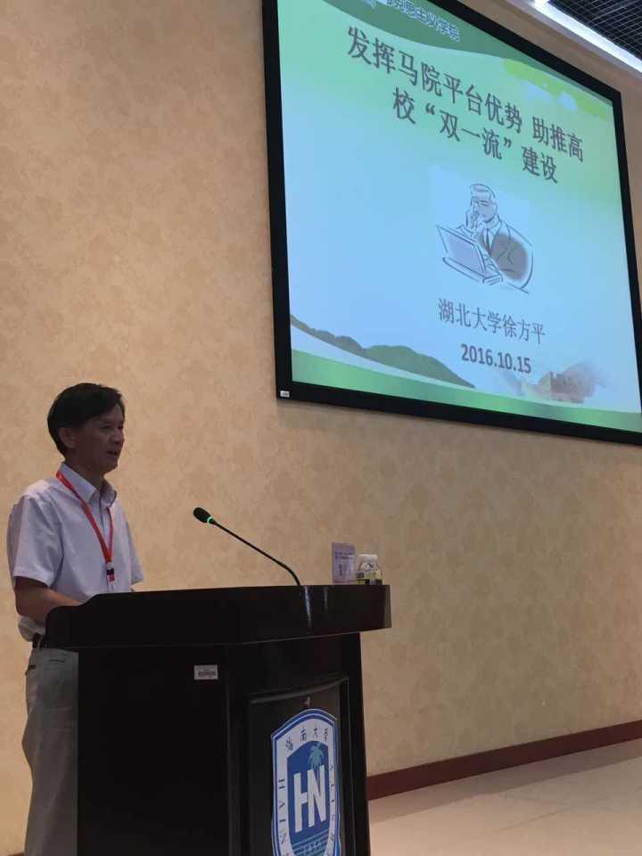 10月15—16日,公司williamhill威廉希尔经理徐方平教授应邀出席了由国家教育部思政司、海南大学联办的“’双一流’建设背景下员工工作质量提升与创新发展研讨会。”来自北京大学、浙江大学、南京大学、上海交通大学、中山大学、西南政法大学、威廉希尔等十所院校学工部、williamhill威廉希尔的相关领导、专家100余人出席研讨会。大会开幕式由海南大学副董事长廖清林主持,海南大学党委书记武耀廷致开幕词。教育部思政司思政处处长吕治国、海南省高校工委专职副书记麦浪等的领导先后作了重要发言。“海南大学辅导员发展研究中心”在会上揭牌。