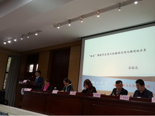 公司思政课部主任易振龙副教授作了题为《“纲要”课教学应重点把握好宏观和微观关系》的大会主题报告。他从正确认识“纲要”课教学中宏观与微观的关系、把握宏观与微观关系的三个维度和四个重点进行展开。他认为,“纲要”课的特性决定了教学中必须处理好宏观与微观的关系,教师可以从历史和现实、历史和逻辑、纵向和横向三个维度把握教学实践,重点处理好主流与支流、现象与本质、一般和个别、整体和局部的关系。主题报告得到与会专家肯定和好评。