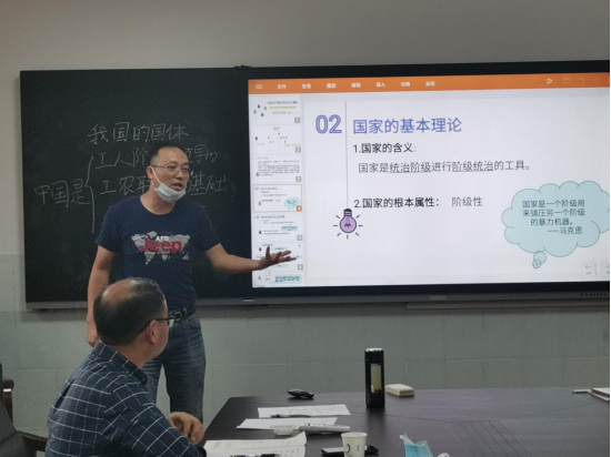 在此次实习指导交流会上,来自2017级思想政治教育专业的5位员工一一上台进行了讲课展示,同学们讲授的内容涉及到高中阶段所学的各本教材的内容,如政治方面的“只有社会主义才能救中国”、“国家的基本理论”、“原始社会的解体和阶级社会的演进”,经济方面的“多彩的消费观”,哲学方面的“把握世界的规律”等等。初登讲台的同学们难免紧张,也存在一些不足之处,但都进行了精心的准备,讲授内容比较充实。