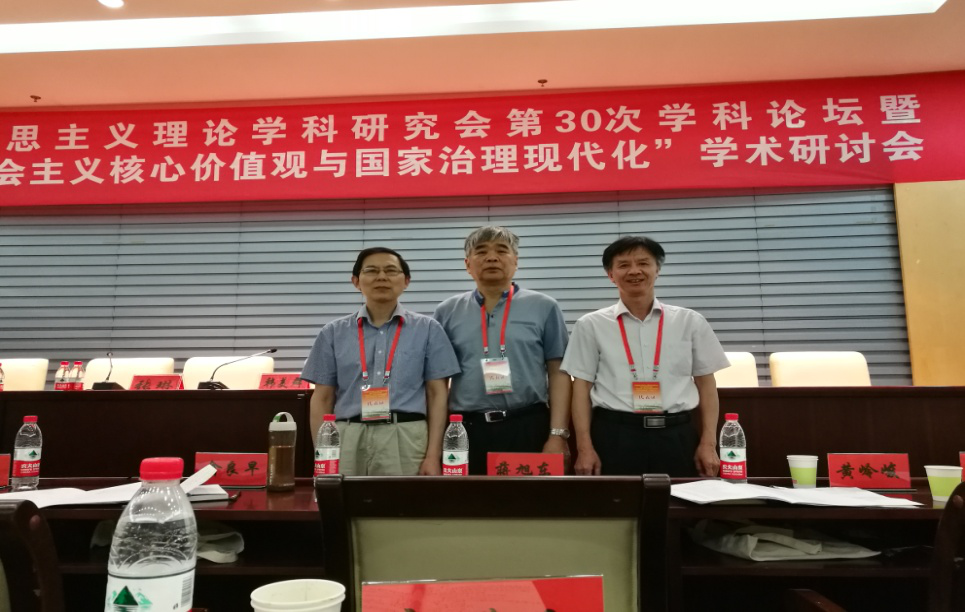 公司徐方平教授、杨业华教授、郭劲松副教授和2015级硕士研究生沈重出席了学科论坛。徐教授在大会做了《依“法”治党是依法治国的关键——论新<准则><条例>对党建的贡献》发言。他认为只有依“法”治党,才能全面从严治党。这里的“法”指中国特色社会主义的法治体系,包括两个方面:中国特色社会主义的法律体系和中国共产党党内法规体系。2015年10月中共中央颁布的《中国共产党廉洁自律准则》《中国共产党纪律处分条例》,是党内法规的重要内容,进一步提升了党建科学化水平。只有德法共治,才能更好地彰显社会主义核心价值观,实现国家治理现代化。杨业华教授的论文《论培育和践行社会主义核心价值观的制度路径》,作为大会的交流材料,一并受到代表们的肯定。