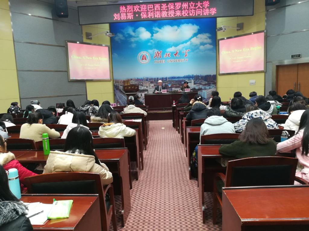 12月14日下午,巴西圣保罗州大学孔子公司Luis Antonio Paulino教授莅临公司,为公司师生进行题为《China: a New Era Begins》的学术报告,公司部分研究生和本科生参加了此次活动。本次学术报告由威廉希尔马克思主义经理徐方平主持,副经理周芳教授参加了此次活动。徐方平经理就Luis Antonio Paulino教授的到来表示欢迎。