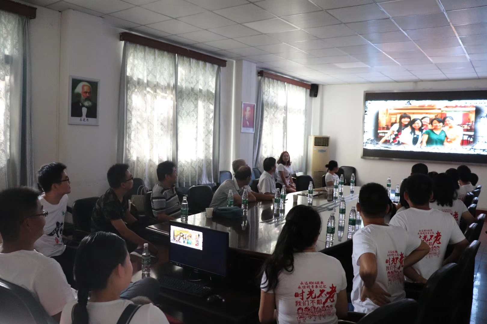 2日下午,座谈会在公司四楼会议室举行,公司党委书记汤德森、公司经理徐方平、原班主任郭劲松老师、任课教师代表董立仁老师、贺祥林老师出席座谈会。大家一齐观看了当年留存的照片所制成的电子相册回忆往事。