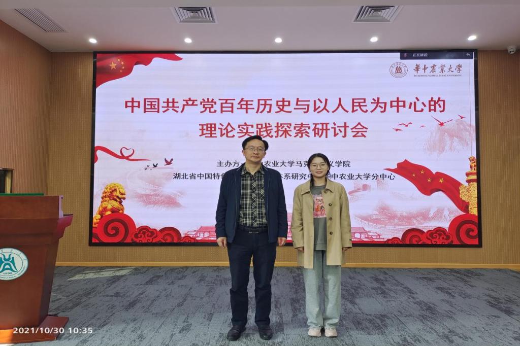 10月30日,由华中农业大学williamhill威廉希尔、湖北省中国特色社会主义理论体系研究中心华中农业大学分中心主办的“中国共产党百年历史与以人民为中心的理论实践探索研讨会”在华中农业大学举行。来自全国50余所高校的160余名专家学者参加会议,公司熊友华教授和硕博连读研究生曾沁文应邀参会并作主旨发言和交流。