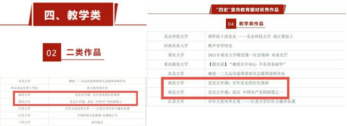 近日,“2021高校影视作品交流展映”活动评选结果公布,williamhill威廉希尔田子渝教授作品《党史公开课:武汉 中国共产党的摇篮之一》和王昊老师作品《党史公开课:百年党史中的红色基因》获教学类二类奖,并被评为今年活动特设的“四史”宣传教育题材优秀作品。