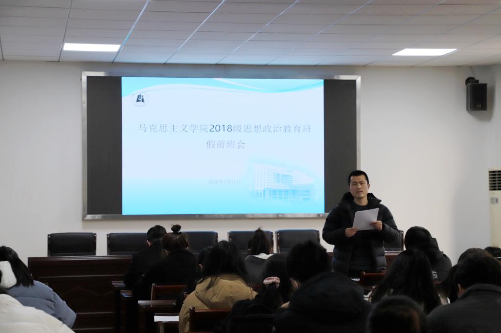 会上,班主任邹浩老师就寒假注意事项进行强调。他说到,同学们到家后,要第一时间汇报;做好疫情防护,按时完成“湖大战疫”平台每日健康打卡任务。同时,他介绍了下学期的主要安排,并提醒同学们利用寒假,认真做好考研复试和就业准备。