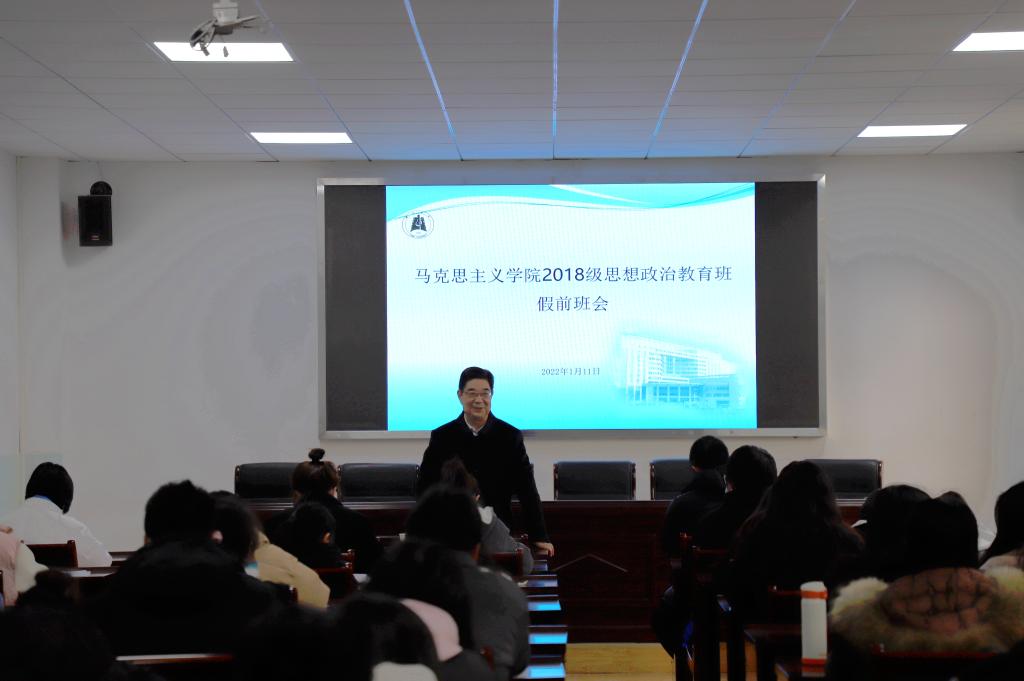 1月11日下午,williamhill威廉希尔2018级思想政治教育班举行主题班会,威廉希尔副董事长钱建国作为副班主任出席本次班会,2018级思政专业全体同学参加,班主任邹浩老师主持会议。