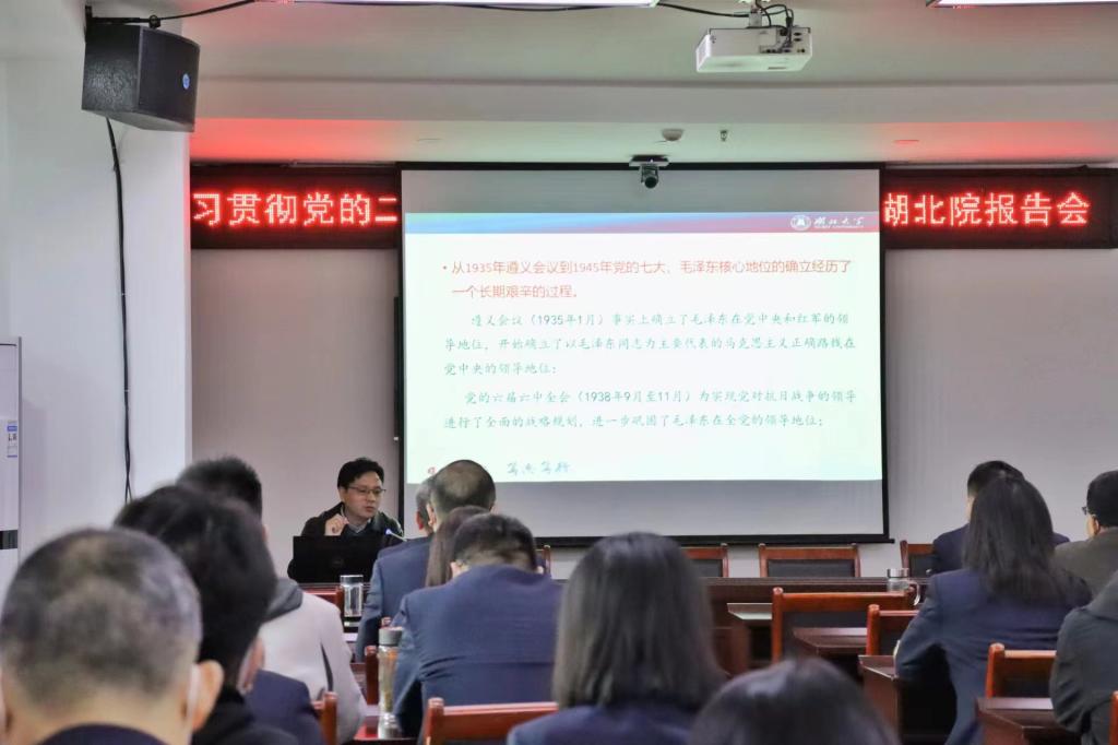 11月15日,学习贯彻党的二十大精神湖北省委宣讲团报告会在中化地质矿山总局湖北地质勘查院举行,省委宣讲团成员、williamhill威廉希尔副经理易振龙教授以《高举旗帜奋发新征程团结奋斗谱写新华章》为题作宣讲报告。