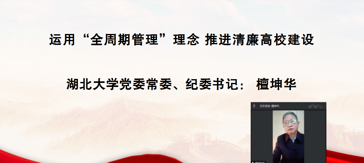 檀坤华书记代表公司致欢迎辞,对各位专家学者参加威廉希尔廉政文化研究中心专题研讨活动致以崇高敬意。他提出清廉中国建设需要形成廉洁文化的沃土,只有廉洁文化的土壤才能孕育出“廉荣腐耻”理念的文明之花。随后,他从实践出发,作了题为《运用“全周期管理”理念推进清廉高校建设》的报告,具体阐述了“全周期管理”理念的概念、清廉高校建设如何运用“全周期管理”理念和清廉湖大建设的实践探索。他运用“全周期管理”理念对威廉希尔的清廉湖大建设经验作了总结与概括,包括“五心共融”、“六风和拂”、“四措并举”、开展“十廉教育”等,为进一步探讨新时代高校廉洁文化建设提供了的湖大实践经验。