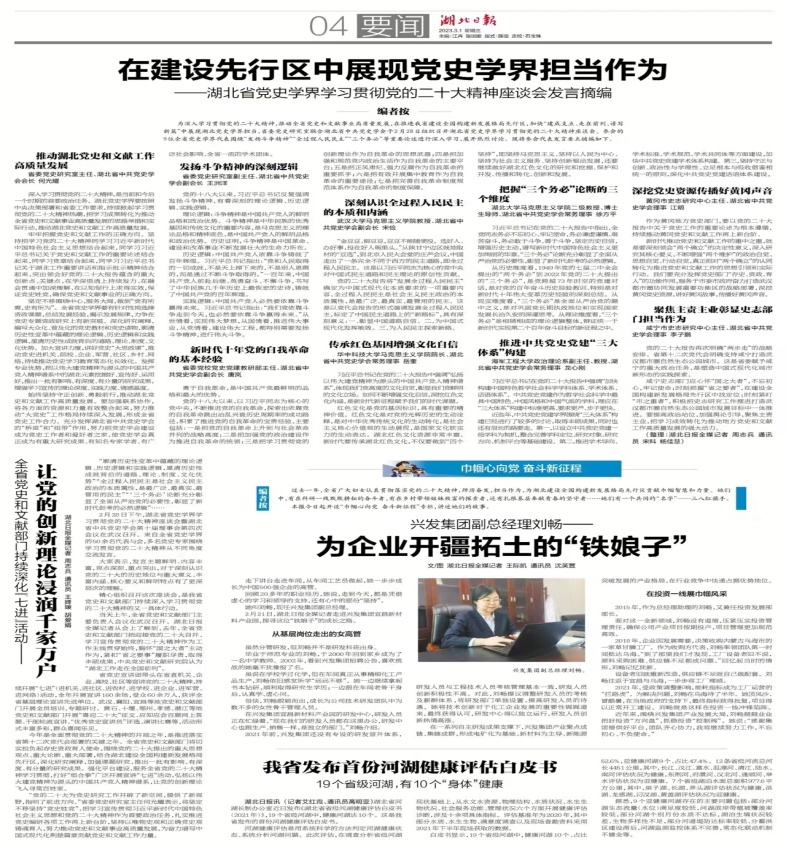 湖北日报链接:湖北省党史学界学习贯彻党的二十大精神座谈会召开。