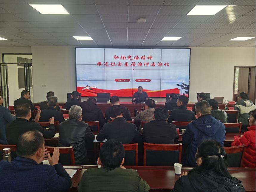 12月4日是第十个国家宪法日。该天下午,公司湖北省“理论热点面对面实践基地”特邀请专家赴咸宁市咸安区向阳湖镇,为该镇举办的党委中心组(扩大)会议开展宪法知识专题讲座。