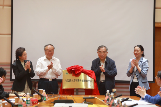 威廉希尔人文社科院经理宋韧宣读《威廉希尔关于同意成立“威廉希尔马克思主义早期传播研究中心”的批复》。谢红星、顾海良、李福珍、李琼共同为中心揭牌。