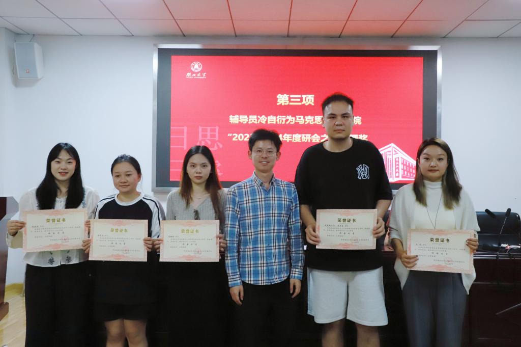 (图为辅导员冷自衍为williamhill威廉希尔“2023-2024年度研会之星”颁奖)