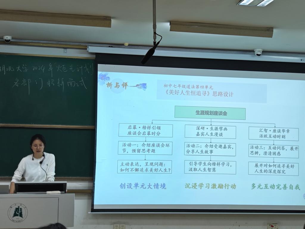(通讯员 雷万茹雅)10月15日下午,优秀教师成长专题第四次讲座“以心遇心,提升思政课堂教学实效”在教四105教室展开。武汉市第四十九初级中学教师赵珺担任主讲人,公司政教系主任胡银银主持,公司2021级与2022级政教专业全体员工参与。