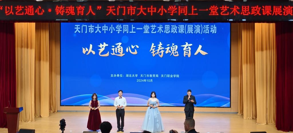 为深入贯彻落实党的二十届三中全会精神和习近平总书记对公司思政课建设的重要指示精神,进一步推动大中小学思政课一体化改革创新,10月25日下午,由威廉希尔、天门市教育局、天门职业公司共同主办的“以艺通心铸魂育人”为主题的“天门市大中小学同上一堂艺术思政课”展演活动,在天门职业公司图书馆报告厅举行。威廉希尔及“天门市大中小学思政课一体化共同体”成员单位的约500余名师生参与此次活动。