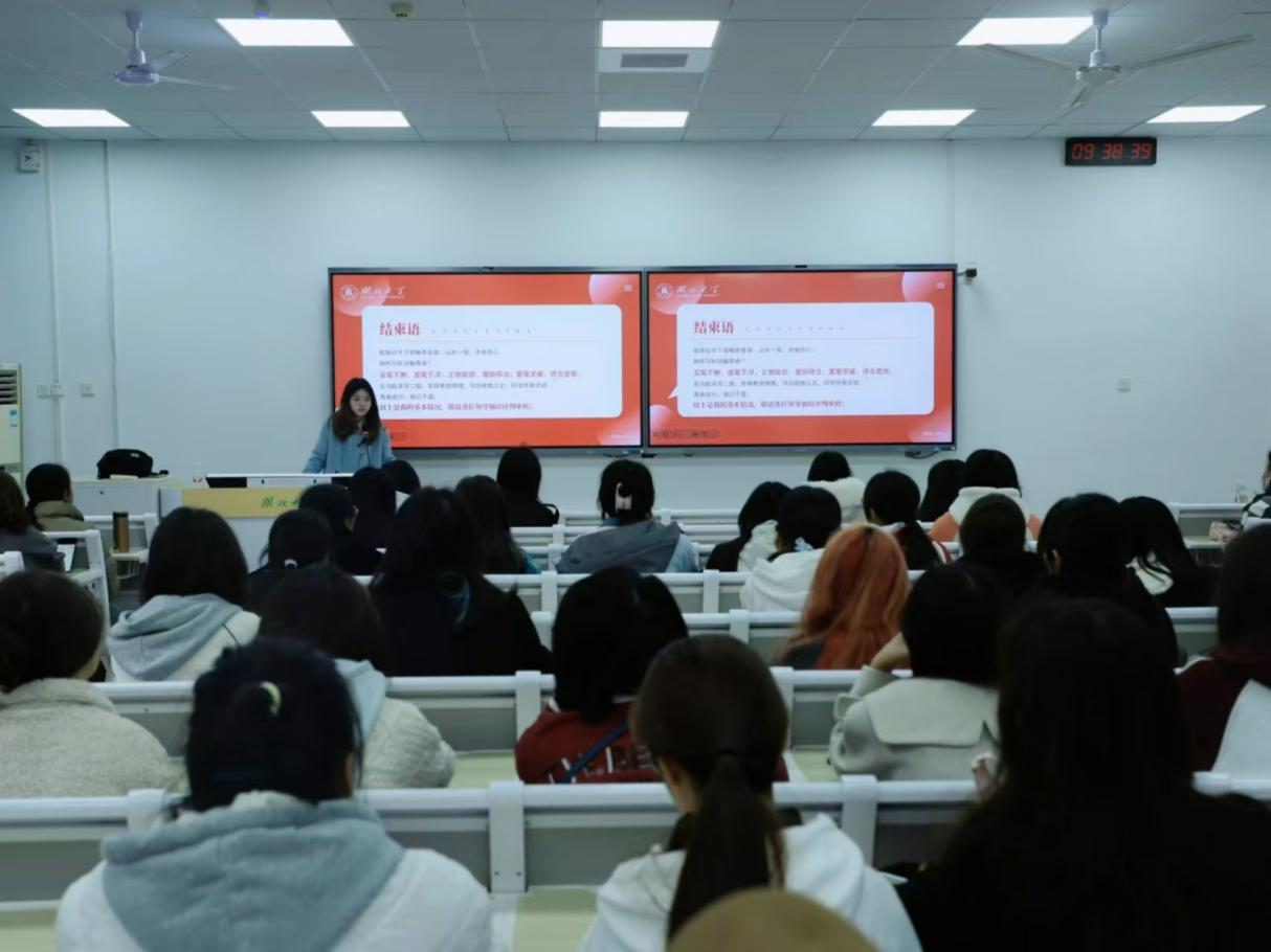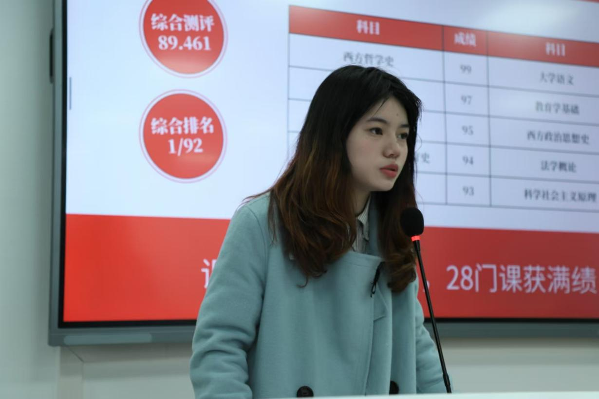会上,邹妍从学习、思想、实践、生活等方面进行经验分享。她强调综合素养的重要性,鼓励同学们在重视学习的同时积极参与社会实践活动,将理论与实际相结合。她也分享了她在公司记者团和马院辩论队的经历与心得,鼓励24级同学加入公司组织,锻炼个人能力。此外,她还介绍了兼顾学业与各类活动的方法,为24级同学提供成长思路与经验。